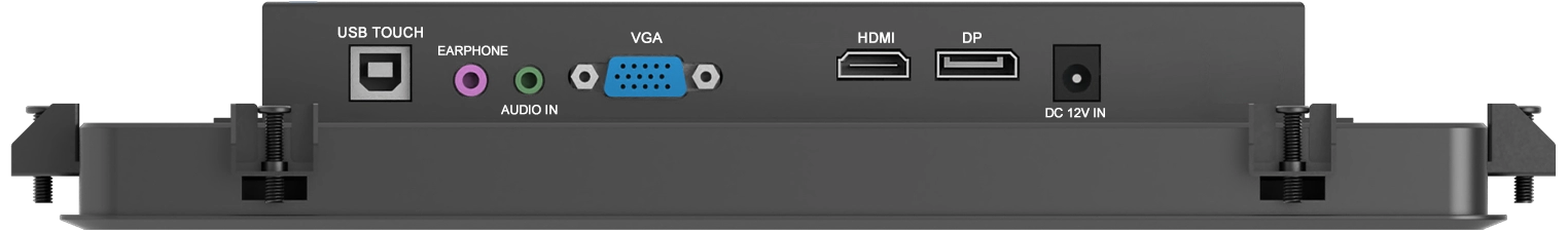 Port Display 2: EARPHONE, AUDIO IN, VGA, HDMI, DP, DC IN, TIPE-B (USB)