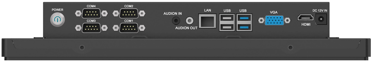 Port Tampilan: HDMI, VGA, COM, MIC, LAN, USB, DCIN, AUDIO