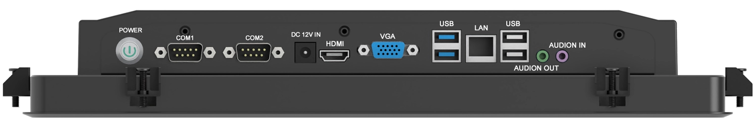 Port Tampilan: HDMI, VGA, COM, MIC, LAN, USB, DCIN, AUDIO