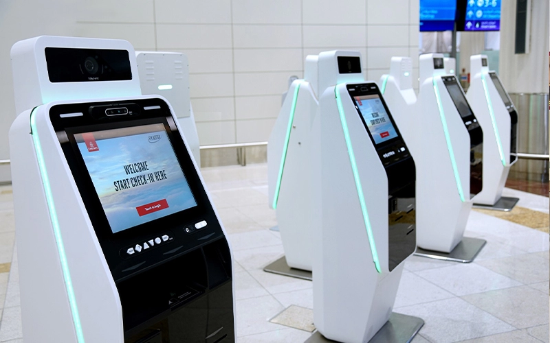 Saat ini, peralatan transportasi cerdas dengan desain sentuh interaktif, seperti mesin penjual tiket otomatis, layanan mandiri bandara, sistem informasi penumpang, banyak digunakan di stasiun kereta api, stasiun kereta bawah tanah, terminal bus, stasiun kereta api cepat, bandara, dan sebagainya. Pengguna dapat membeli tiket, melakukan identifikasi kartu, mencetak boarding pass, melihat rencana perjalanan, dan lain-lain melalui pengoperasian yang sederhana.